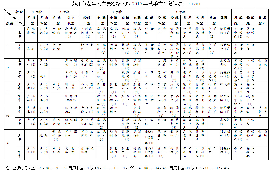 苏州市老年大学民治路校区2015年秋季学期总课表