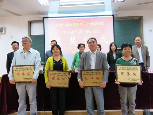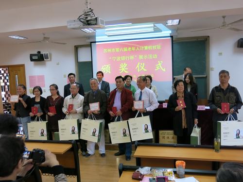由市老年大学协会组织开展的苏州市第六届老年人计算机技能展示活动颁奖仪式日前在市老年大学举行。市政协原副主席、市老龄协会会长葛维玲,市老龄办副主任刘贵祥,市老年大学协会副会长、市老年大学副校长顾洪,市老年大学协会副会长沈鸿秋,宁波银行苏州姑苏支行副行长李芙佳等和来自全市各老年大学、老年学院的共60多名老年计算机爱好者参加了颁奖仪式。