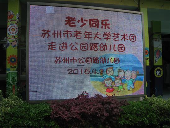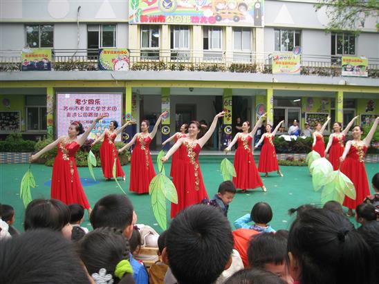 4月21曰上午,苏州市老年大学艺术团在校领导的带领下,来到了公园路幼儿园与这里的260多名小朋友欢聚,开展老少同乐联谊活动,给孩子们送去了一场别开生面的文艺演出。