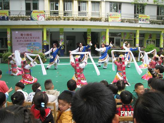 在活动中,欢快的民族舞蹈,情深意长的萨克斯演奏,热烈奔放的迪士科健美操,如梦如幻的江南舞,优美动人的蒙古舞和西藏舞,把孩子们带入了美的意境,给他们美的享受。受到感染的小朋友们和艺术团的队员一起互动,随着音乐拍手,可爱的摇头晃脑,如痴如醉。其场面十分感人,老少同乐,其乐融融。