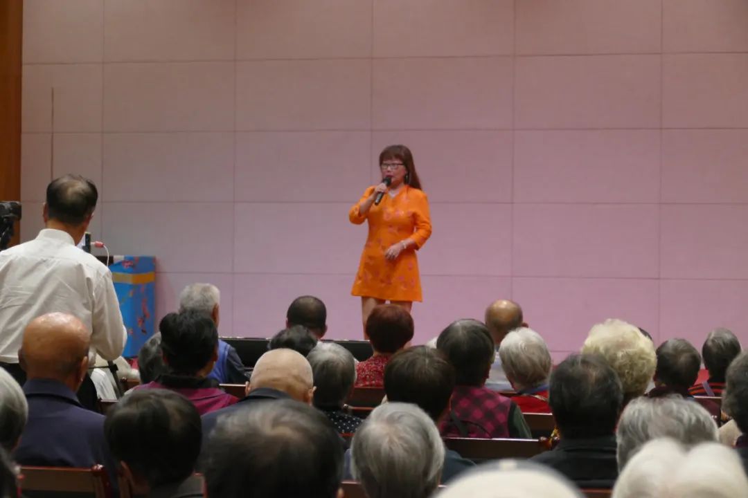 副大队长陆小微领衔,刘荣盛、项新兰、刘建华的“队长组合”首先上场,他们串联唱响了七首耳熟能详的红歌,勾起了长者们的幸福回忆,纷纷跟着哼唱。