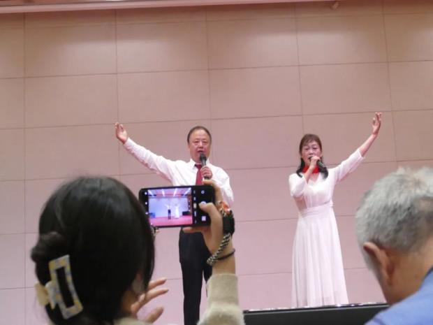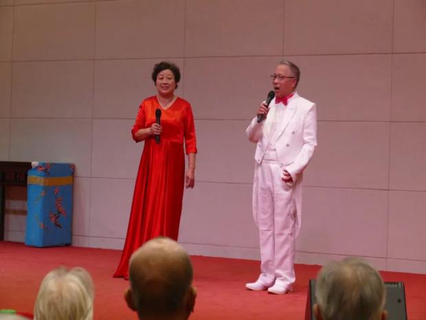 资深戏迷张佑良,这次搭档他的小师妹周丽娟,献演的是锡剧《珍珠塔》中“前园会”,俩人音色甜美、字正腔圆、抑扬顿挫、声情并茂。