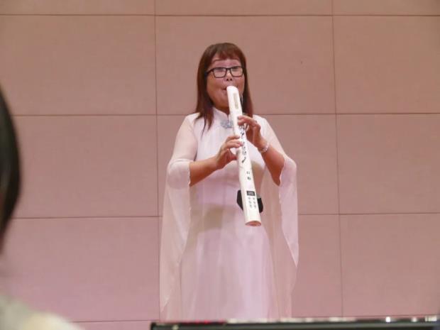 浪漫又激情的《敖包相会》,徐晓梅同学通过电吹管优美的音色和悠扬的旋律表达爱情、传达爱意,让人们沉浸在世界充满爱的情感之中。