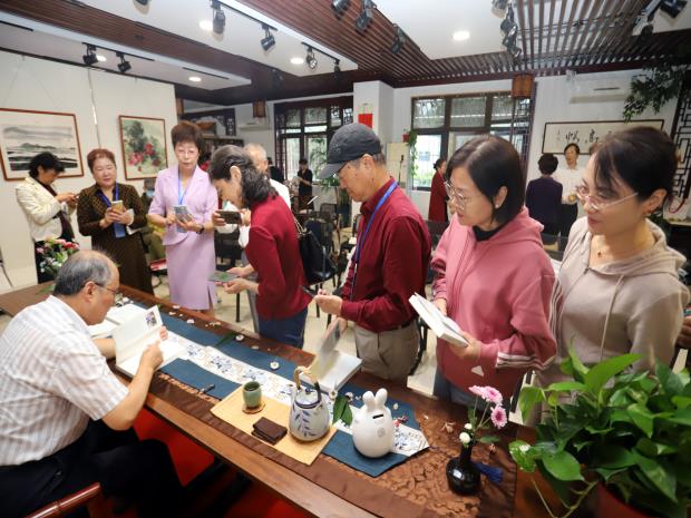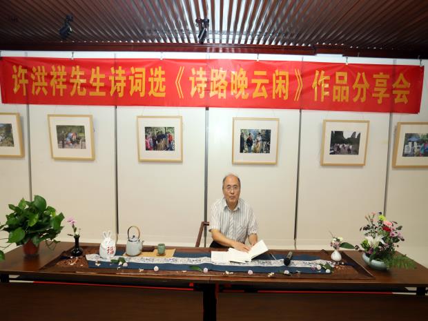 2023年10月7日下午,由苏州市老年大学朗诵协会组织的“许洪祥先生诗词选《诗路晚云闲》作品分享会”在苏州天马文化传播有限公司举办。苏州市老年大学朗诵班和市老干部分校朗诵班的50多位学员在朱正老师的带领下参加了活动,分享会上《诗路晚云闲》一书作者许洪祥先生与大家分享了自己创作诗词的心路历程,并为大家在新书上签名,学员选取新书中部分诗词进行了朗诵分享。