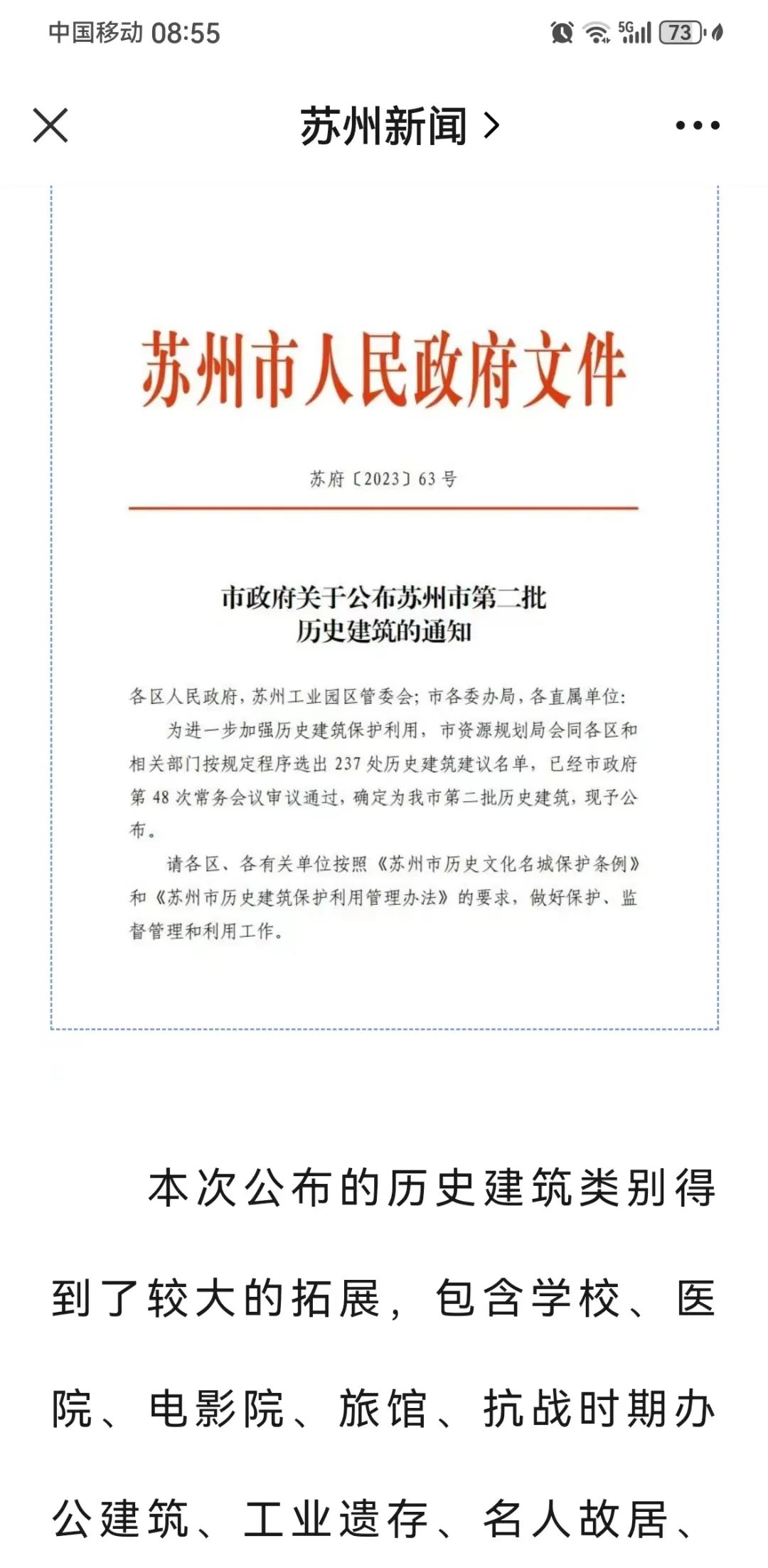 学校8号楼列入“苏州市第二批历史建筑名单”