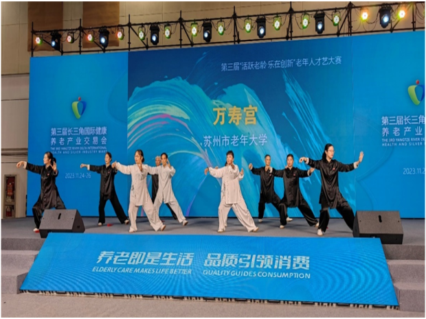 为积极培育银发经济,推动养老事业和养老产业协同发展,由江苏省老龄产业协会和苏州市养老产业联合会主办,主题为“养老即是生活,品质引领消费”的“第三届长三角国际健康养老产业交易会(简称老交会)”,于2023年11月24日-26日在苏州国际博览中心馆隆重举办。交易会汇集了长三角地区优质养老企业和养老服务、养老产品、养老技术等品牌,倡导智慧养老和理性享老的理念;邀请了多名业界专家、学者和企业代表共同探讨养老产业的发展,通过一系列养老论坛、沉浸式体验和老年人才艺大赛等活动,为养老产业提供一个广泛交流合作的平台,为银龄老人提供一个展示身心健康的舞台。