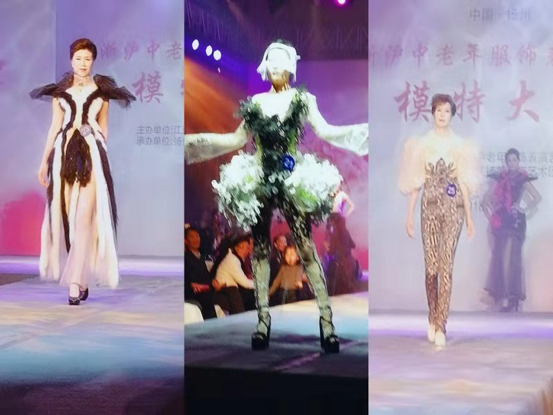第一轮休闲装比赛。选手们身穿各种各样的休闲服,轻松自然,充满自信。86岁高龄的资深模特高君慧老师是今天的评委,她点评道,休闲服是能上T台,也能上街的服装。我们通过比赛就是要展示中老年健康、美丽、自信的精神风貌。引领中老年的服饰潮流。第二轮是创意装比赛。42套风格迥异的创意装,全部由我国著名服装设计师姚峰先生设计和提供。选手穿着创意装一亮相,就令人耳目一新,有的像鸟,有的像鹿,有的像贵族、有的像树﹍ 大自然的美,赋予了设计师的创作灵感。流动的模特表演和展示,恰是模特与服装设计师心灵的契合。也是设计师内心的表达。中国服装设计师协会理事执委、江苏省服装设计师协会副主席、中国著名时装设计师姚峰老师在点评时显得略微激动,他觉得今天的中老年模特表现优秀,能对他的设计理念作很好的理解和表达,中老年模特能这么好的驾驭创意装展示是意想不到的。第三轮是旗袍走秀结合有关服饰的知识问答。更是把东方女性那种含蓄,端庄,典雅,知性的美,得到了充分展现。在选手一一答题的过程,也让大家更多的了解了服饰和模特表演的知识。联盟艺术总监、苏州大学艺术学院教授皇甫菊含的精彩点评,点出了联盟的宗旨和比赛的意义。她说,穿旗袍答题,是希望旗袍之美是知性的、内外兼修的。我们看到了选手们的优雅气质和素质修养。相互学习交流,共同提高,这是我们联盟的初心,通过我们每年的交流活动,坚持不懈的训练和舞台实践,在专业上得到了不断的提高。全场一片掌声。在紧张评分统计时段,苏州、南京、扬州等团奉献了垫场文艺节目,有小提琴独奏,京剧片段、男、女声独唱和歌舞表演,再加上男、女主持人妙语连珠,活跃了全场气氛,推动了现场高潮。