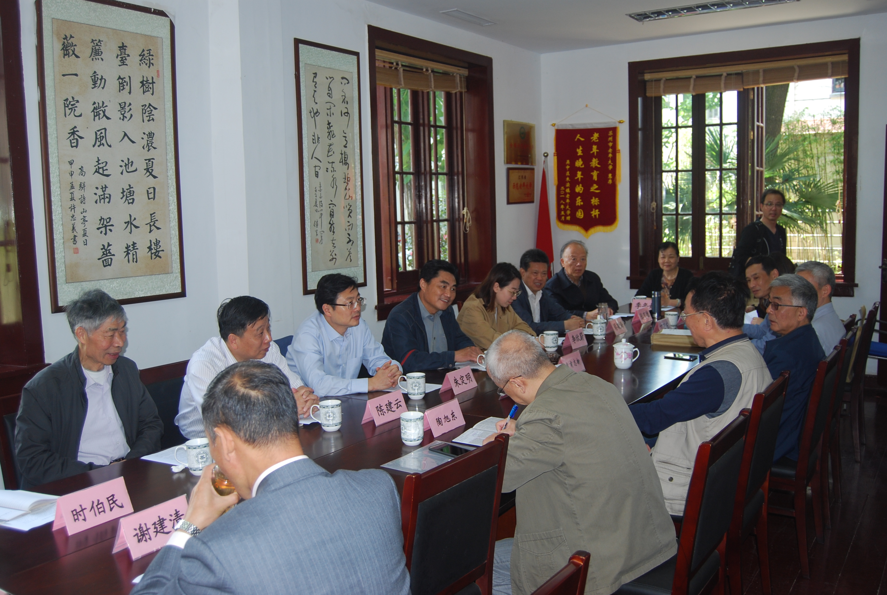 日前,镇江市教育局、镇江市老年大学及所辖区县老年大学大学一行15人,在朱定明副局长率领下来我校参观访问。董宙宙校长接待了来宾,并就我校办学体制、管理模式、课程设置、招生规模、校园建设、教育活动开展等基本情况一一作了介绍。随后陪同客人参观了校园。
