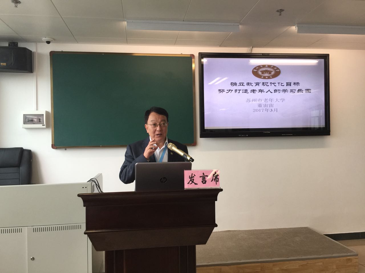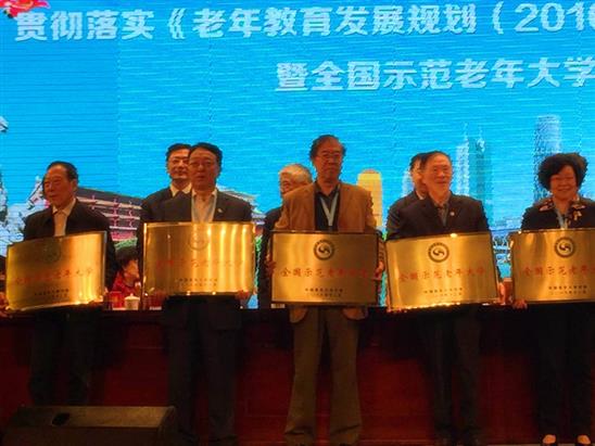 3月29 日至30日,中国老年大学协会在广州召开贯彻落实《老年教育发展规划(2016-2010年)》工作推进会暨全国示范老年大学表彰座谈会,学习贯彻《老年教育发展规划(2016-2020年)》精神,研究探讨老年教育发展战略,全面做好“全国示范老年大学”推广工作。会议为176所荣获“全国示范老年大学”称号的学校代表颁发了奖牌和荣誉证书,其中,江苏省有苏州市老年大学、金陵老年大学、徐州老年大学等10 所学校荣获该称号。据了解,这176所全国示范老年大学是从全国61000多所老年大学里评选出来的。苏州市老年大学校长董宙宙出席会议并上台领取了奖牌和荣誉证书,同时应邀在大会论坛上作了《确立教育现代化目标 努力打造老年人的学习乐园》主旨演讲,用苏州市老年大学的发展经验回答了关于“探索、破解老年教育发展难题,激发社会活力,提升老年教育现代化水平”论坛主题,受到了与会代表的高度评价。广东、上海、天津、贵州、武汉、成都等省市老年教育工作者在会上交流了办学经验。