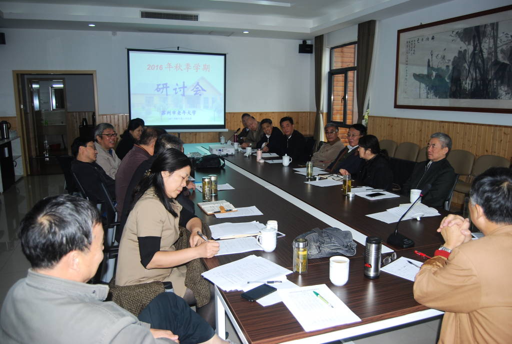10月29日学校召开2016年秋季学期研讨会,学校管理人员全部参加,会议议题主要有三个:一是做好全国示范老年大学校验收前准备工作;二是开发新课程,确定教学用房布局调整;三是2017年春季招生工作。各处、室、系在会前都作了充分的准备,经过大家认真讨论形成了以下共识:一、争创全国示范老年大学是我校发展的阶段目标,要对照条件,找差距,寻问题,不断提高办学能力,不断提升办学水准,各部门要通力合作做好迎检准备工作。二、学校三期改造使办学条件得到进一步改善,是学校发展的新机遇,各系要积极开发新课程,以满足老年人现代生活多样化学习的需求,同时部分教室进行调整,使教学用房布局更趋合理,教学功能得到最大发挥。三、招生新办法经一年招生实践后收到了预期的效果,缓解了报名拥挤的现象,得到了师生的认可,2017年春季招生继续按现招生办法实施,但在具体操作环节上要不断完善,重点要加强招生工作宣传。