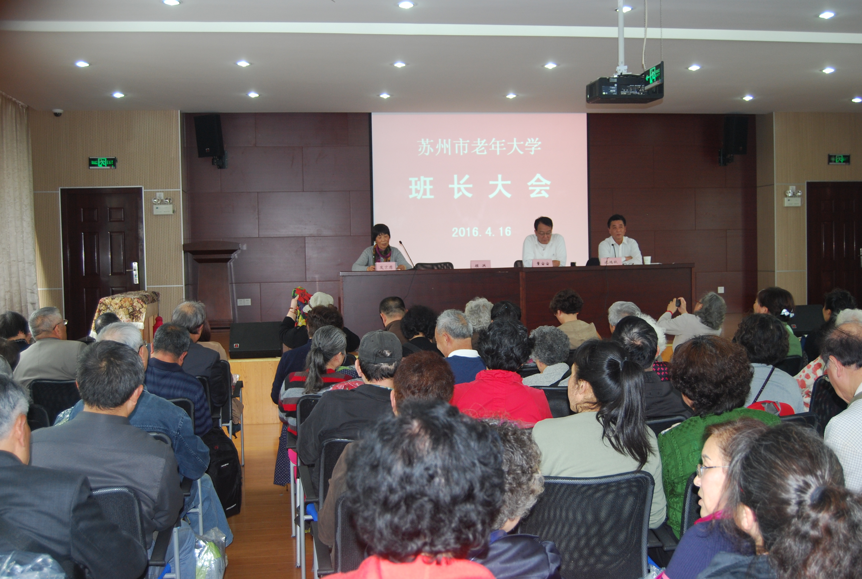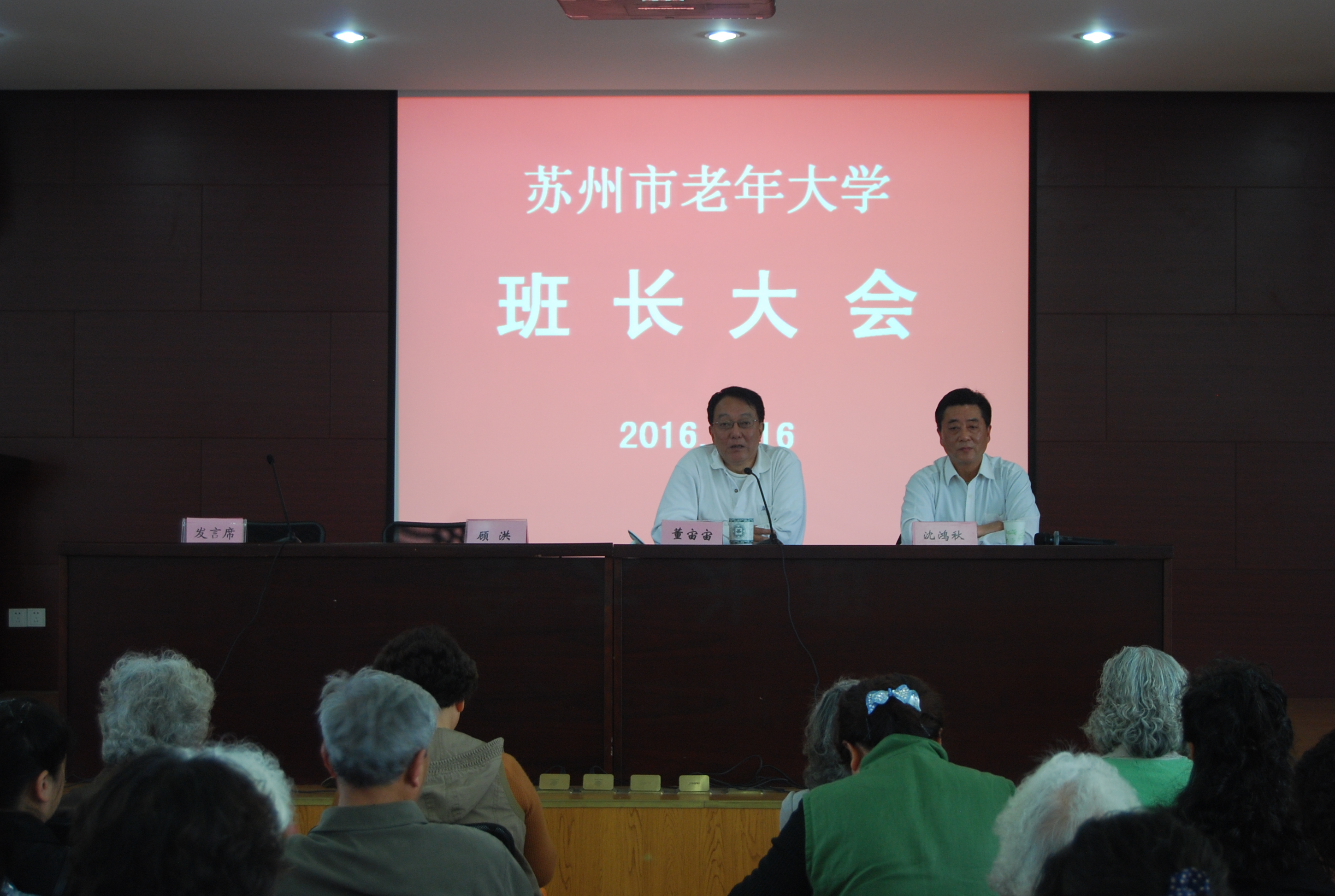 4月16日下午,2016年班长工作会议在苏州市老年大学演艺厅隆重举行。市老年大学校长董宙宙、副校长顾洪、皇甫志新出席了会议。会议由市老年大学协会副会长沈鸿秋主持。267名班长代表8000多名学员参加了会议。今年的会议与往年不一样,不但有经验交流,还有专家讲座;不但有大会集中,还有各个系单独活动。议程紧凑,内容丰富。