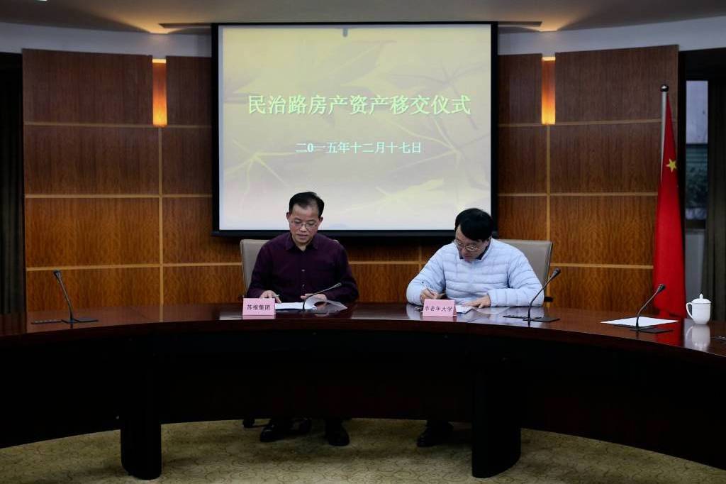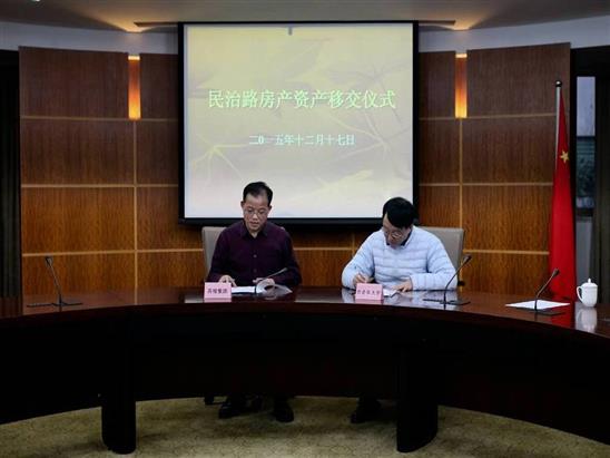 12月17日下午在苏州日报社会议室,举行“苏州报业集团民治路两地块资产移交仪式”。首先市老年大学校长董宙宙就苏州日报社民治路房产划拨老年大学的情况作了介绍,接着市财政局副局长朱晓平宣读了市财政局下发的《关于将苏州日报社民治路房产划给苏州市老年大学的通知》,最后市报业集团党委书记、社长刘文洪、市第十二届政协副主席陈振钢先后讲话。随后,董宙宙校长与刘文洪分别代表市老年大学、市报业集团签署了“苏州报业集团民治路两地块资产移交”文本。
